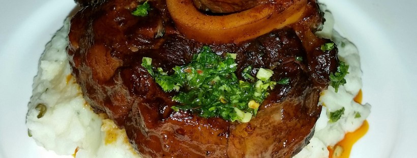 Carefully remove the cooked shanks (so meat doesn’t fall off the bone) from the pot and place a top mashed potatoes, or roasted veggies or simply enjoy on it’s own.