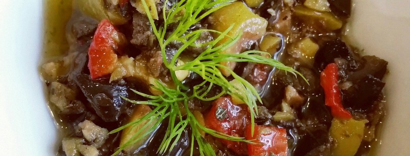 Start off by chopping both types of olives, and red roasted peppers super fine. In a bowl mix all your ingredients of chopped olives, red roasted peppers, capers, oregano, basil, pepper flakes and olive oil together. Mix well and serve as a spread or dip.